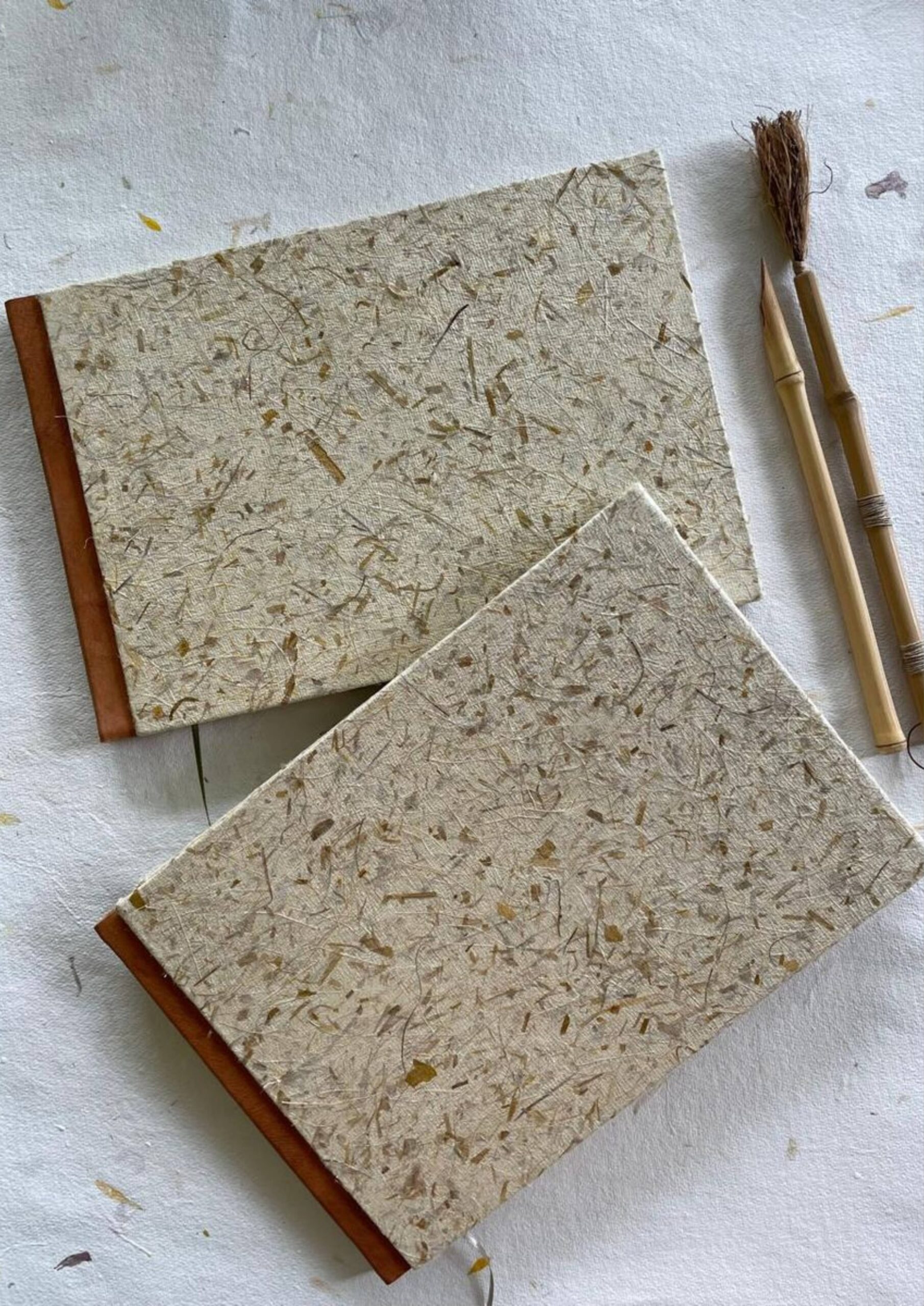 Tapas duras de papel hecho a mano de fibras, lomo de cuero
